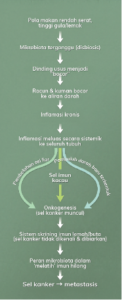 Diagaram Alur Mekanisme Kebocoran Usus, Mikrobioma, dan Kanker
